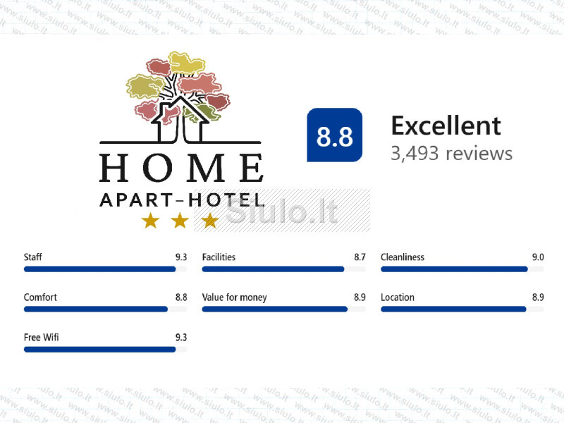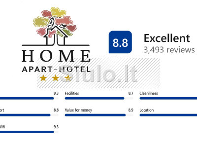 „Home Apart-Hotel“ – tai jauki ir patogi vieta apsistoti pačioje Vilniaus širdyje, adresu V. Vivulskio g. 12B, vos 500 metrų nuo senamiesčio. Čia rasite viską, ko reikia komfortiškam poilsiui – kiekviename numeryje įrengtos mini virtuvėlės su kavos ir arbatos ruošimo rinkiniais, šaldytuvais, virduliais ir stalo įrankiais, o mikrobangų krosnelės patogiai įrengtos kiekviename aukšte. Svečiai gali naudotis 24 valandas per parą veikiančia bendra virtuve, talpinančia iki 12 žmonių, skalbimo ir džiovinimo paslaugomis bei bagažo saugykla. Viešbutyje įrengta vaikų žaidimo erdvė, jaukus žaliuojantis poilsio ir saunos, kurioje galima atsipalaiduoti po dienos darbų ar pažintinių kelionių. Automobiliu atvykstantiems svečiams suteikiamos nemokamos privačios stovėjimo vietos. Vos per kelias minutes pėsčiomis pasieksite parduotuves – IKI (2 min.) ir visą parą veikiančią MAXIMA (5 min.). Pėsčiomis ar trumpu važiavimu lengvai pasieksite žymiausias Vilniaus vietas: Valstybinį Vilniaus Gaono žydų muziejų (850 m), Okupacijų ir laisvės kovų muziejų (1,4 km), Valdovų rūmus ir Prezidentūrą (1,5 km). Geležinkelio ir autobusų stotys yra vos už 2 km, o tarptautinis Vilniaus oro uostas – tik už 4,8 km. Verslo keliautojai patogiai pasieks ir Lietuvos parodų bei kongresų centrą LITEXPO, esantį vos 11 minučių kelio automobiliu. Visą parą dirbantis daugiakalbis (lietuvių, anglų, lenkų, rusų) personalas pasirūpins jūsų poreikiais, suteiks turizmo informaciją ir patars dėl lankytinų vietų – „Home Apart-Hotel“ – puikus pasirinkimas norintiems jaukumo, patogumo ir patrauklios vietos pačiame Vilniaus centre.