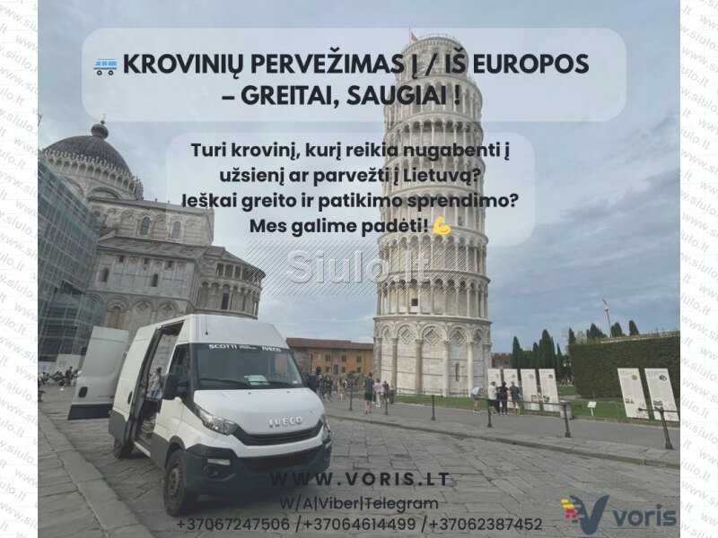 Alytus - Lenkija,Vokietija,Italija,Olandija,Belgija (visa Europa) EXPRESS PERVEŽIMAI 37067247506 ARBA 37064614499 info@voris.lt www.voris.lt