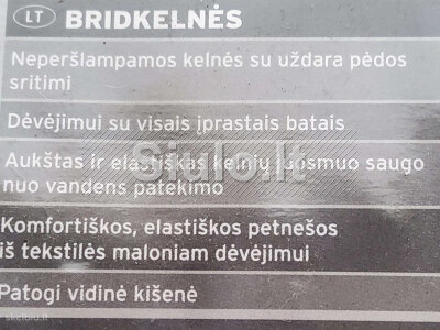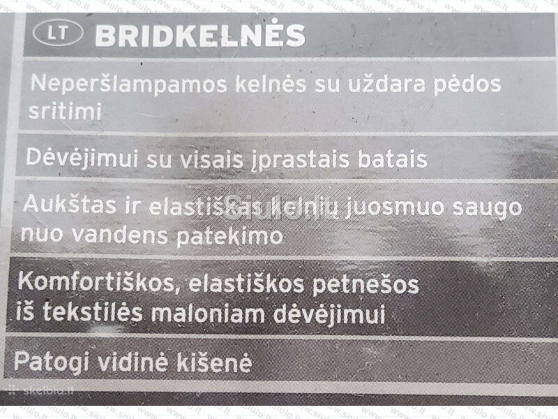 Neperšlampamos kelnės su uždara pėdos sritimi Yra petnešos Patogi vidinė kišenė Batų dydis iki 46
