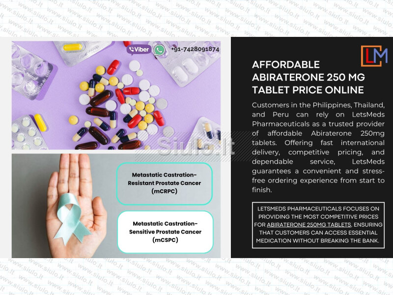 Looking to buy Abiraterone 250 mg tablets at an affordable price in the Philippines? LetsMeds offers genuine and high-quality Abiraterone sourced from licensed Indian manufacturers. With fast and reliable delivery available in major cities including Metro Manila, Cebu, Davao, Quezon City, Makati, and Zamboanga, customers can receive their orders within 5 to 10 business days. Each package is securely packed and thoroughly quality-checked to ensure authenticity. For the latest Abiraterone tablet price in the Philippines or to place an order, contact LetsMeds via WhatsApp or Viber at +91-7428091874