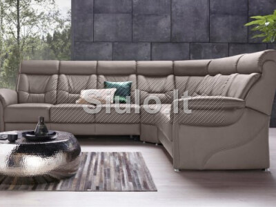 Prabangus, aukštas, patogus sėdėti , geros kokybės kampas, spyruoklinis blokas Pilnai dengtas geros kokybės eko oda. Reguliuojasi viršutinių pagalvių atlenkimo padėtys,kampinėje dalyje dvi atsilenkenčios pagalvės. Su miegama funkcija ir patalynės dėže.