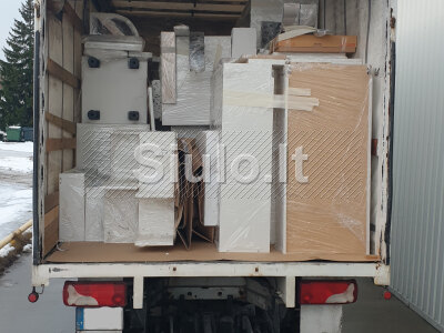Vežame baldus, statybines medžiagas, buitinę techniką, medieną, gyventojų ir įmonių daiktus ir kitus krovinius.