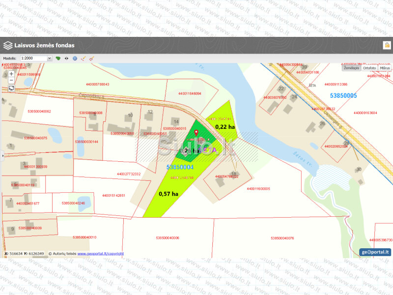 • Vandentiekis: miestelio trasa eina pro sklypą