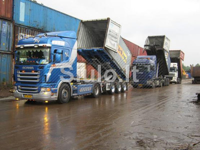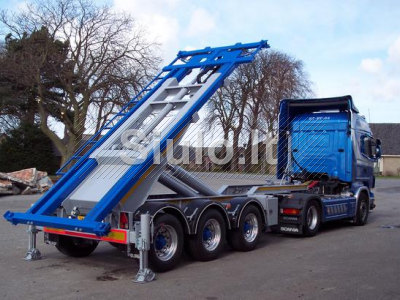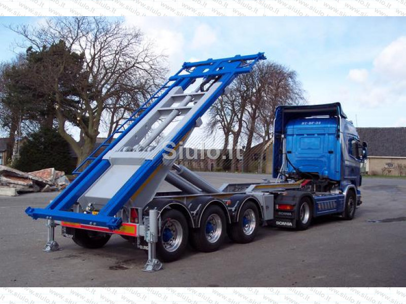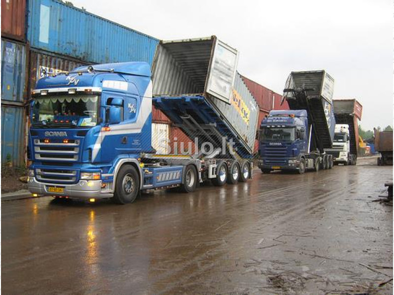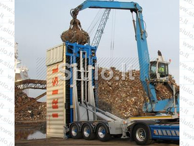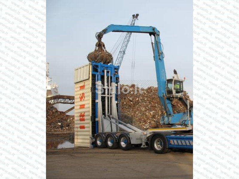 Naudota puspriekabė, jūrinių konteinerių vertikalia padėtimi 95 vertimo sistema.