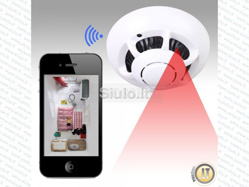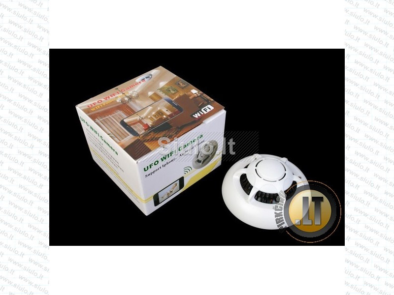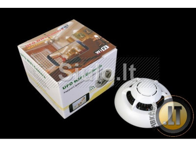 NAUJIENA! - UFO WIFI Camera STK3350. Stebėkite savo aplinką per išmaniuosius telefonus ar kompiuterį. Stebėti galite ir nuotoliniu būdų (esant internetui). Lengvas įdiegimas ir naudojimas. Dūmų daviklio dizainas. Mažai pastebima. Montuojama ant lubų.