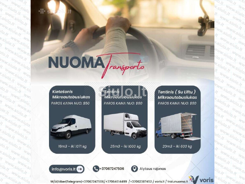 NUOMA IR PER ŠVENTES TRALŲ-PRIEKABŲ-MIKROAUTOBUSŲ www.voris.lt Alytuje ir rajone +37062387452 arba +37064614499