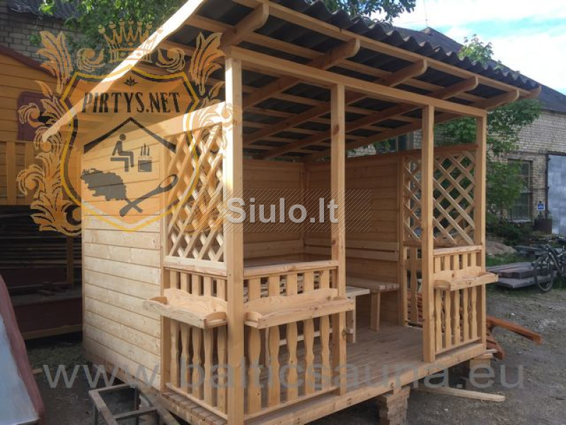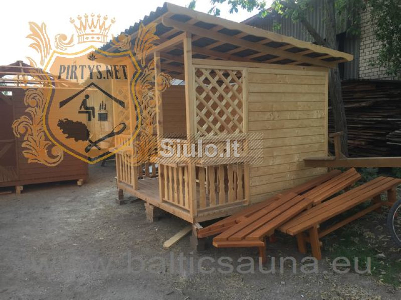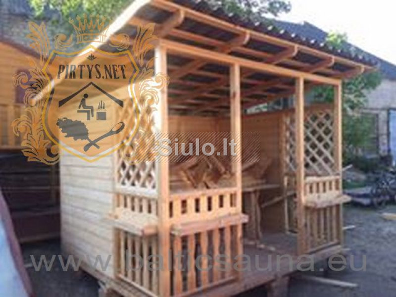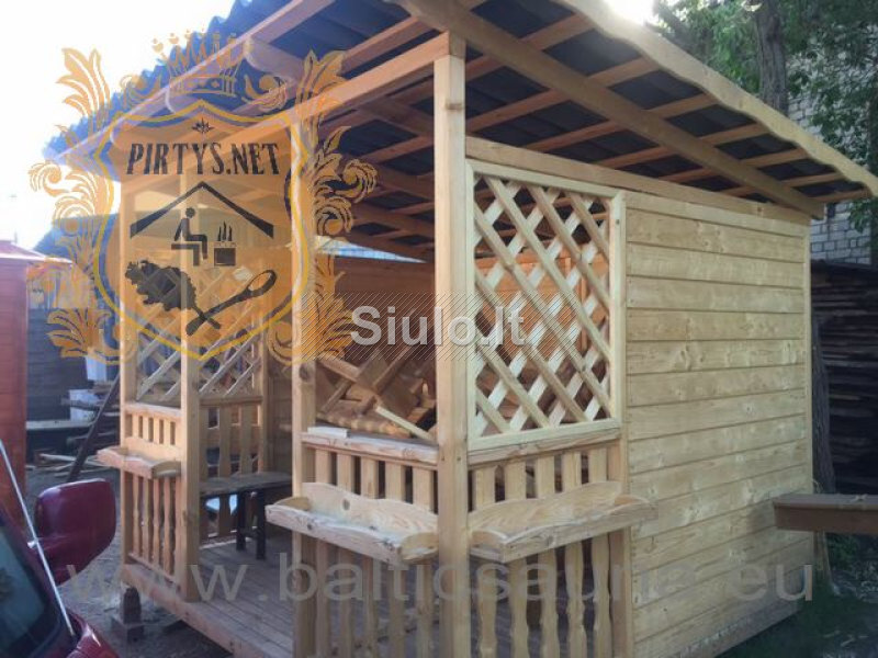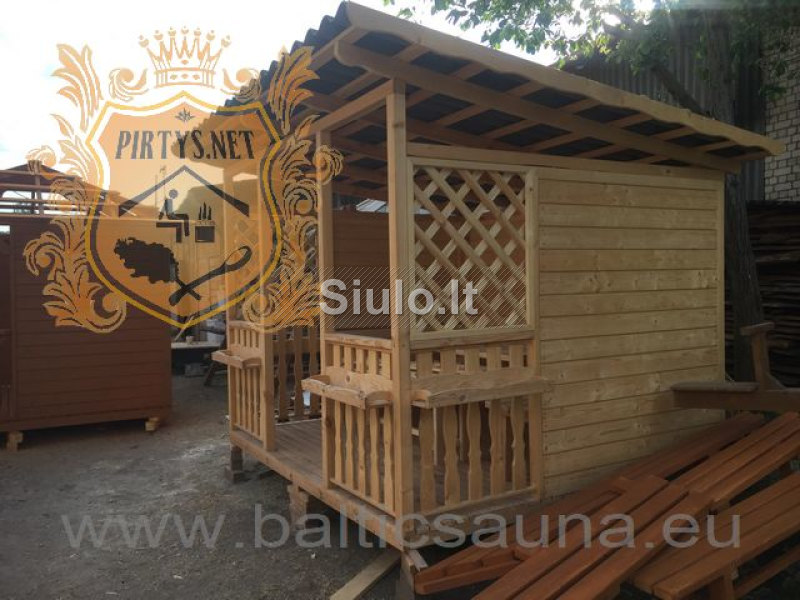 Pirtys, medinės pavėsinės, vasarnamis, sodo nameliai
