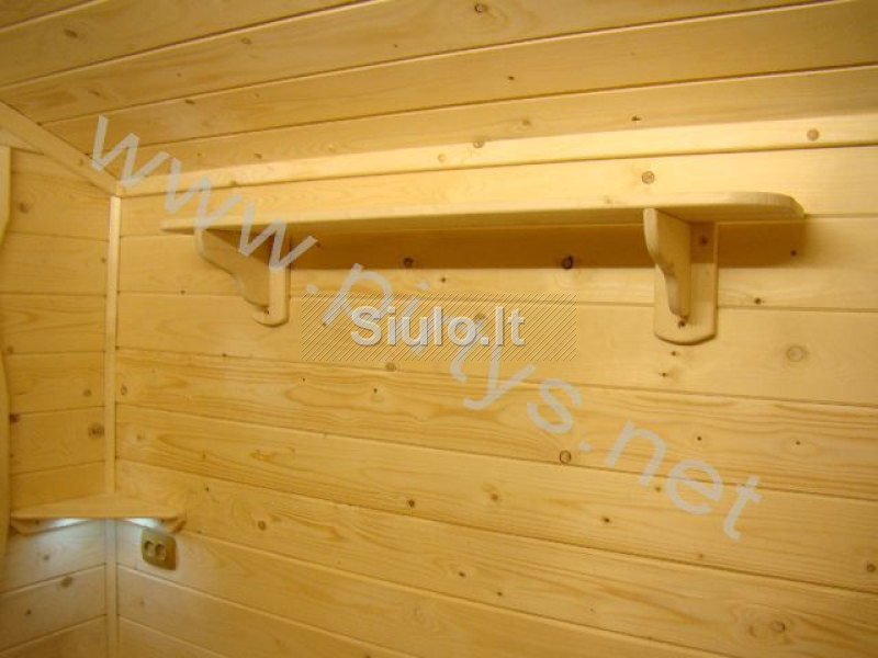 Parduodu mažiausia mūsų siūloma pirtį ,,M39“, kurios bendras plotas su terasa 21,5m2. Terasos plotas 4m2, pirties plotis 17,5m2. Rąstinė pirtis, gamybos metai 2012, šildoma malkomis, būklė: nauja. Kokybiška ir šilta namo konstrukcija. Išorines sienos 150mm Twinskin, vidinės sienos karkasines. Langai mediniai su stiklopaketu, stogas: profiliuota skarda 150mm akmens vata. Pirtis yra pilnai įrengta, su visais vidaus baldais, poilsio zonoje jus rasite patogu stalą 4- 6 žmonėms atsisieti kampini suolą, taip pat lentynos su rozetėmis radio imtuvui ir arbatinukui pastatyti, pirties pečius su židinio apdaila suteikia jaukumą šaltais žiemos vakarais, veidrodis su rozete fenui , pradžiugina moteris, rankšloščių džiovykla, maloniai sušildo šlapius rankšloščius. Garinė taip pat yra pilnai įrengta, aukštis 2,3-2,4 metro. Įrengiami gultai, pagaminti iš drebulės. Garinė apšiltinama ir apkalama A rūšies drebulės dailylente. Vardiniai gultai gali pradžiuginti „didžiausius“ skeptikus. Gultai yra mobilus , norint išvalyti pirtį , galima juos pakelti , periant žmogų apatinį gultą galima pastumti giliau. Kaitymosi patalpoje galimė sumontuoti „spec“ apšvietimą Pirtyje pastatoma tradicinė pastovaus kūrenimo rusiškos pirties krosnis, garantuojanti lengvą ir švelnų, bet pakankamai karštą garą. Pradinė garinės temperatūra yra neaukšta - tai patogu moterims, tačiau užpylus vandens ant akmenų, karštas garas maloniai pasklinda po visą garinę, ir sudaro karšto oro kepurę, o antro plauto lygyje atitinka pačius aukščiausius pirties gurmanų reikalavimus. Pirtys nudažyta impregnuota ir paruošta naudojimui.