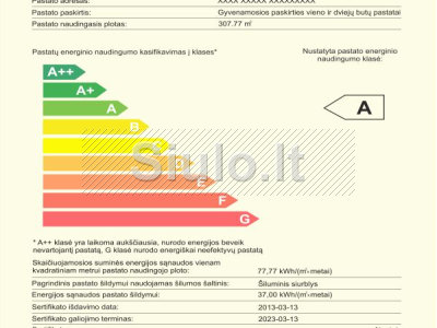 Energinis naudingumas - apskaičiuotas energijos kiekis, išreikštas pastato energinio naudingumo klase, reikalingas naudojant pastatą pagal paskirtį. Atlikus energinį sertifikavimą yra išduodamas energinio naudingumo sertifikatas, kuris galioja 10 metų. Pagal energijos sąnaudas pastatai klasifikuojami į energines klases: A++, A+ A, B, C, D, E, F, G. Mes atliekame namų, pastatų bei butų energinį sertifikavimą. Dirbame greitai ir kokybiškai visoje Lietuvoje! Prašome kreiptis: Mob.: 868653020 arba el.p.: info@kskompanija.lt,