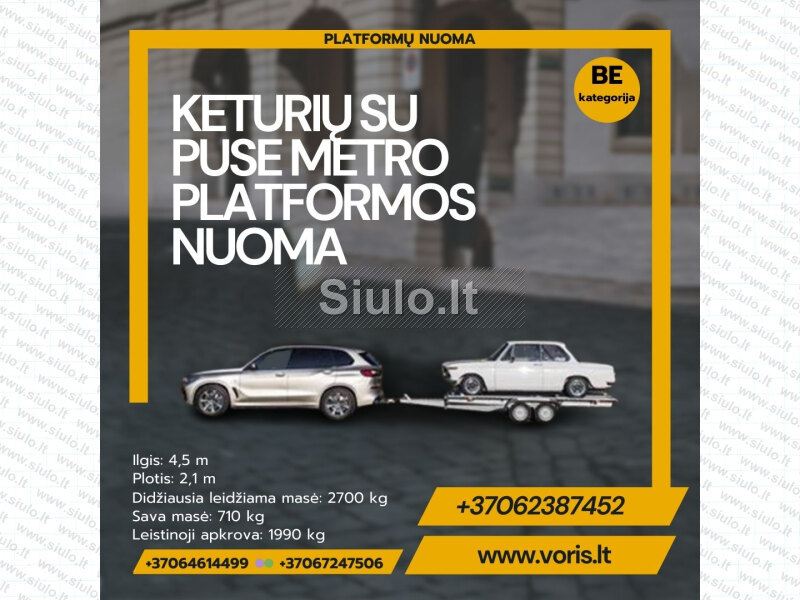 Platformos 450×200 (1990–2050 kg) (BE/CE kategorija) NUOMA www.voris.lt Alytuje ir rajone +37062387452 arba +37064614499